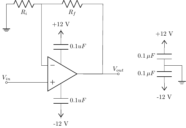 The op-amp should be powered with ±12 V.