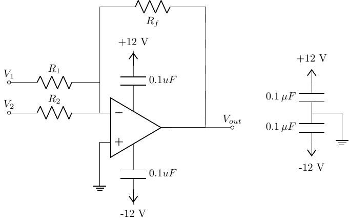 Derive the expected output voltage expression based on the input voltages and resistor values to confirm your experimental results. Note both amplitudes and phase.