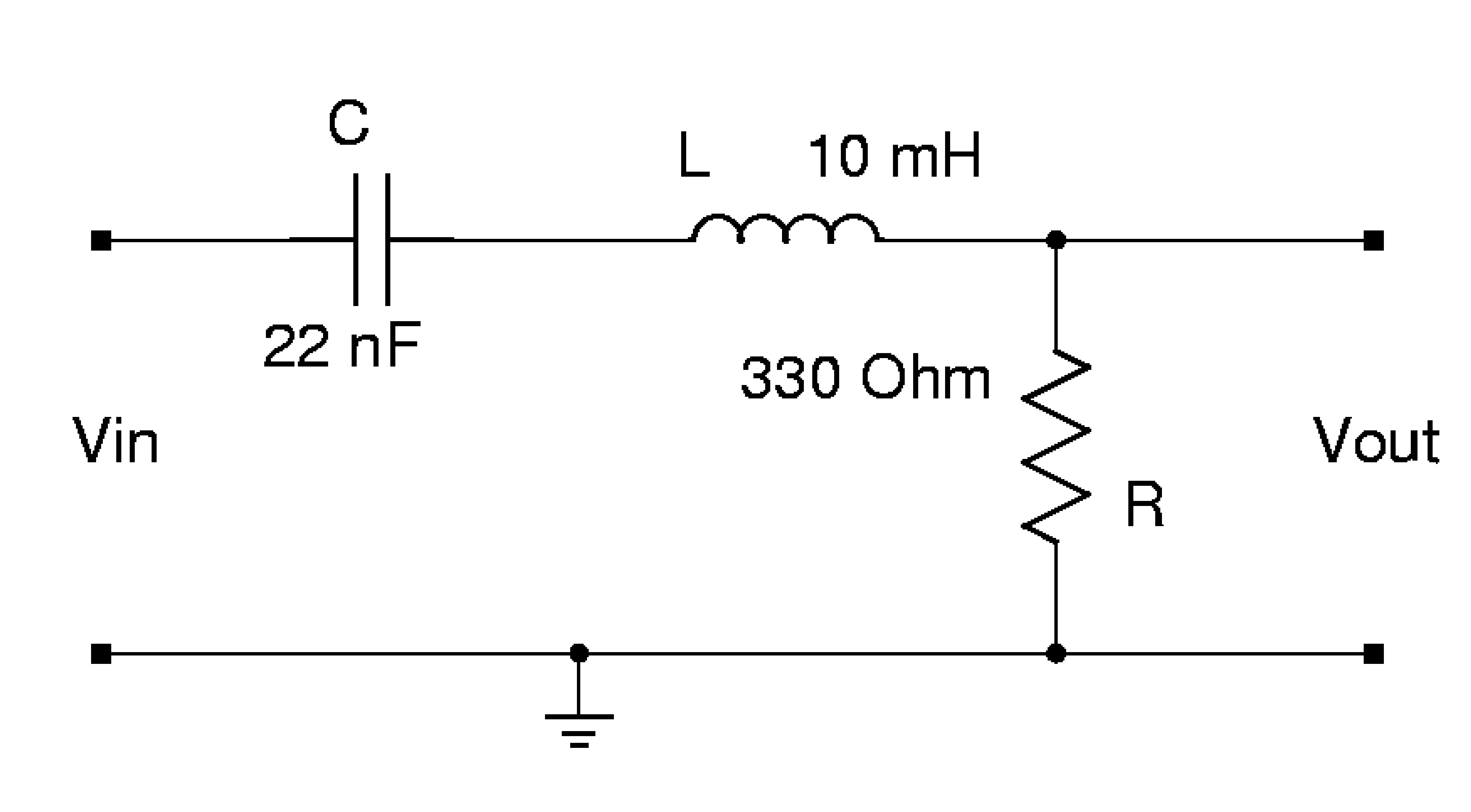 For the circuit above, if R = 330 Ω, C = 22 nF and L = 10 mH, what is: