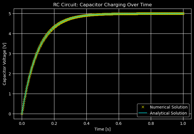 solution = solve_ivp(dVcdt, t_span, Vc0, t_eval=t_eval)
