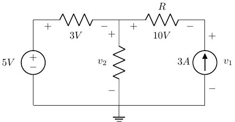 KVL Apply KVL to find the voltages \(v_1\) and \(v_2\) in the circuit below: