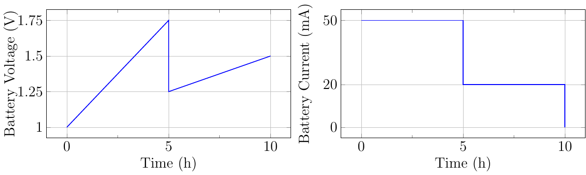 Battery Charging The figure below shows a two-rate charge cycle for a battery. Solve for: