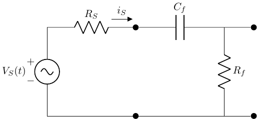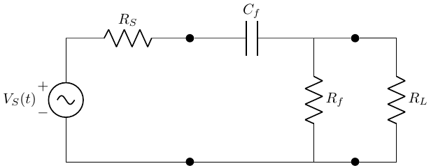 \(Z_{in} = Z_f = Z_{C_f} + Z_{R_f}\) (as “seen” by the source)