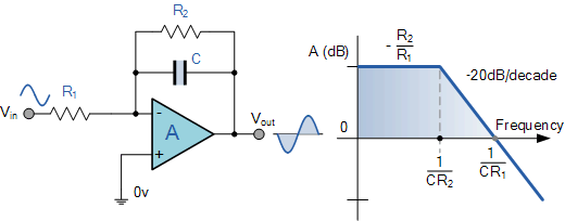 Cutoff Frequency: \(\omega_c = \frac{1}{R_2 C}\)