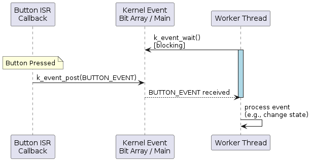 ISR -> KEvents : k_event_post(BUTTON_EVENT)