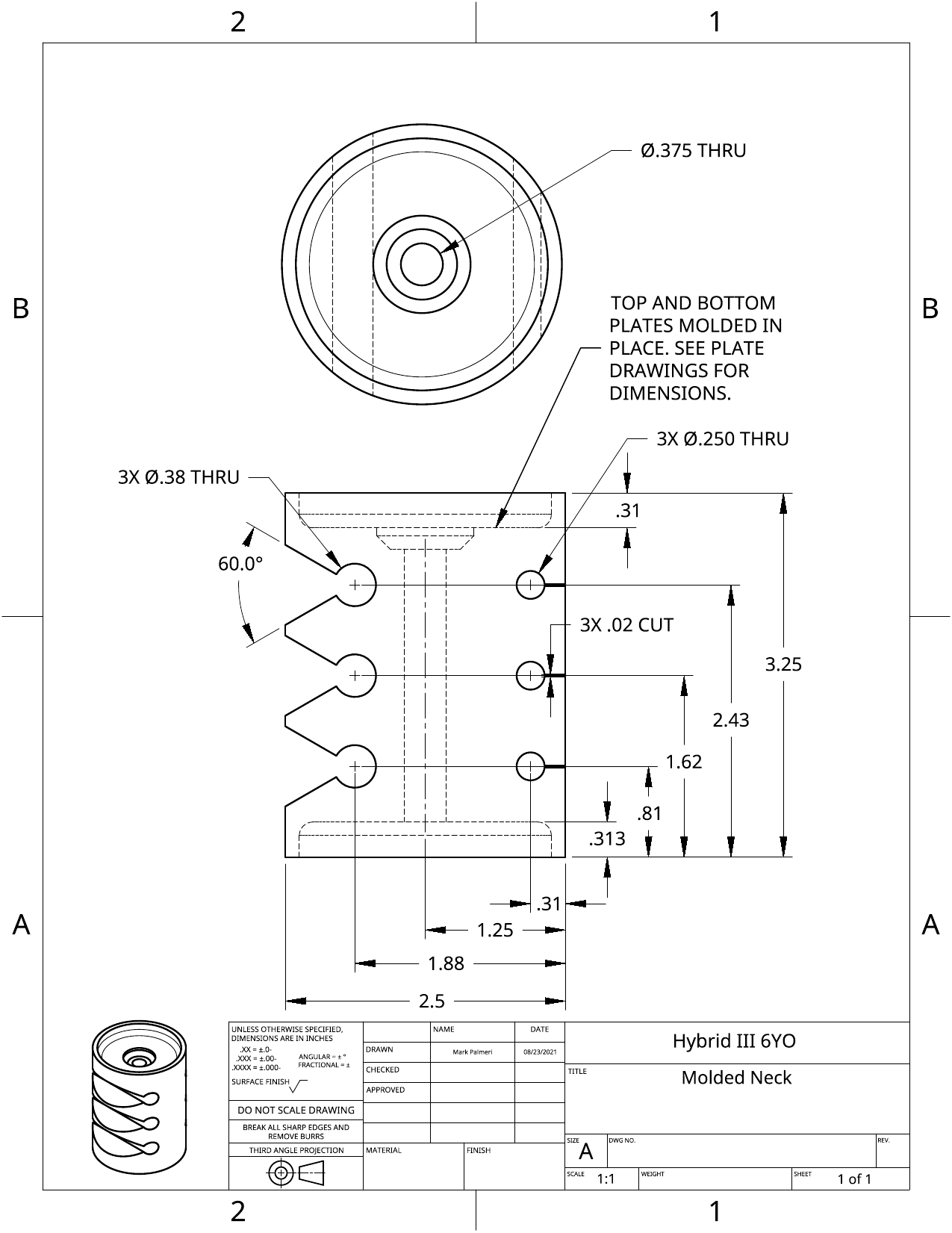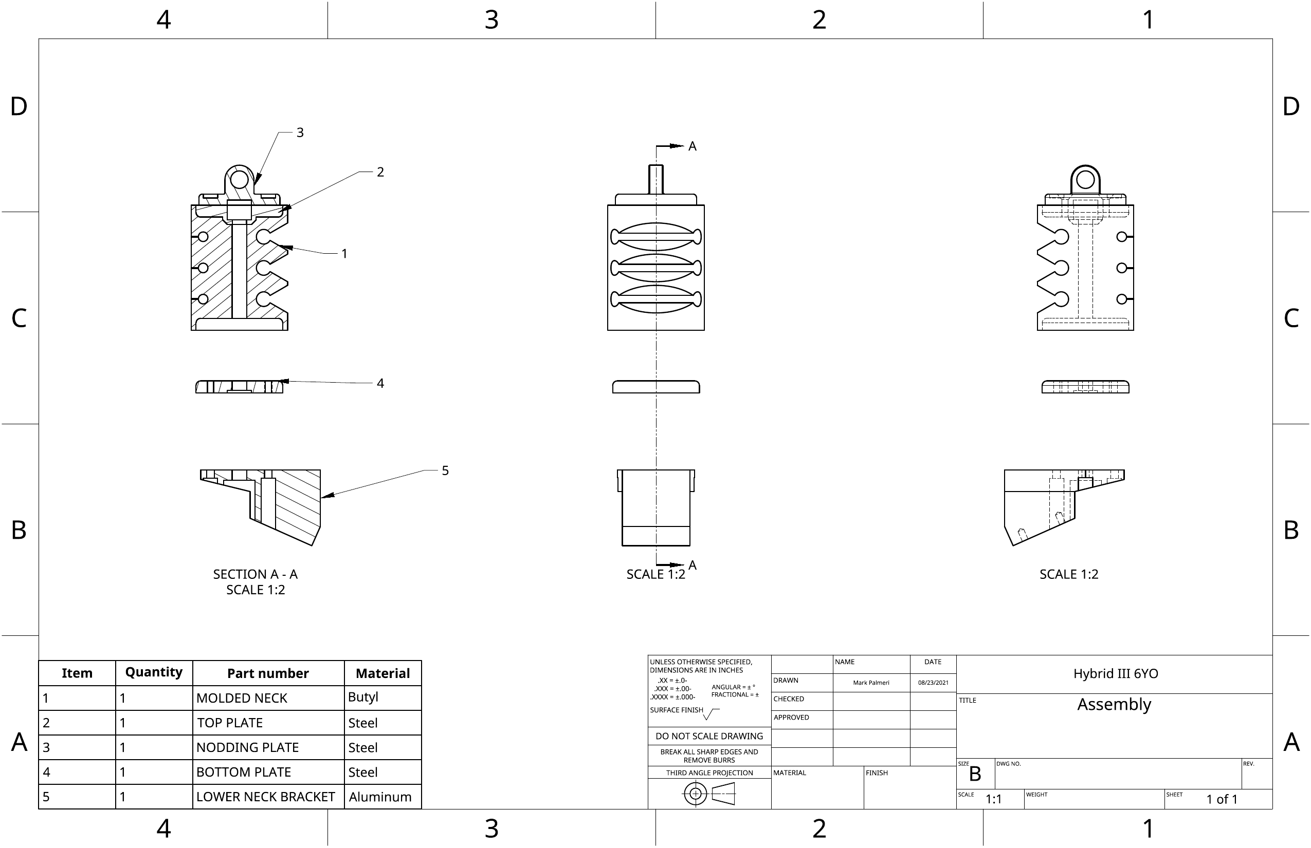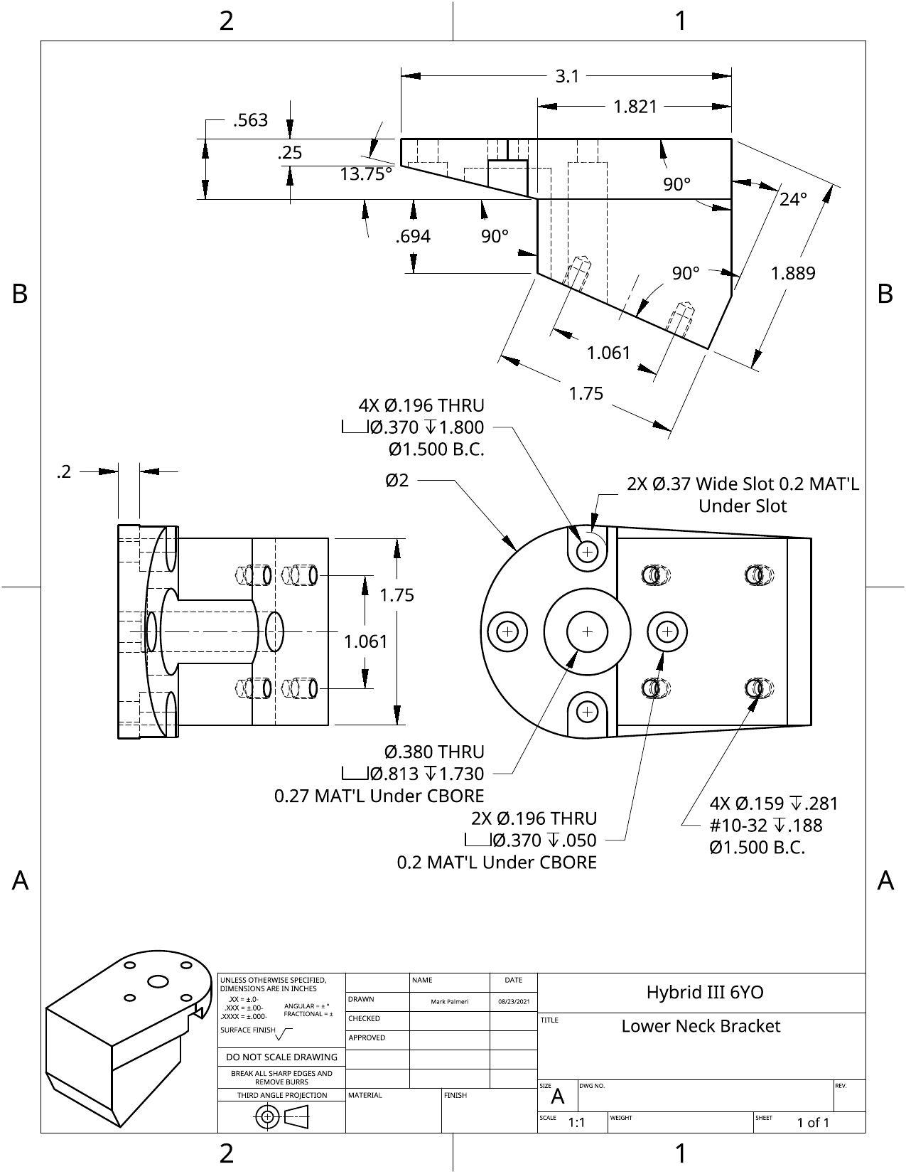 Upload mechanical drawings and a screenshot of the part for all of your parts to the Hybrid III 6 y/o Gradescope assignment.