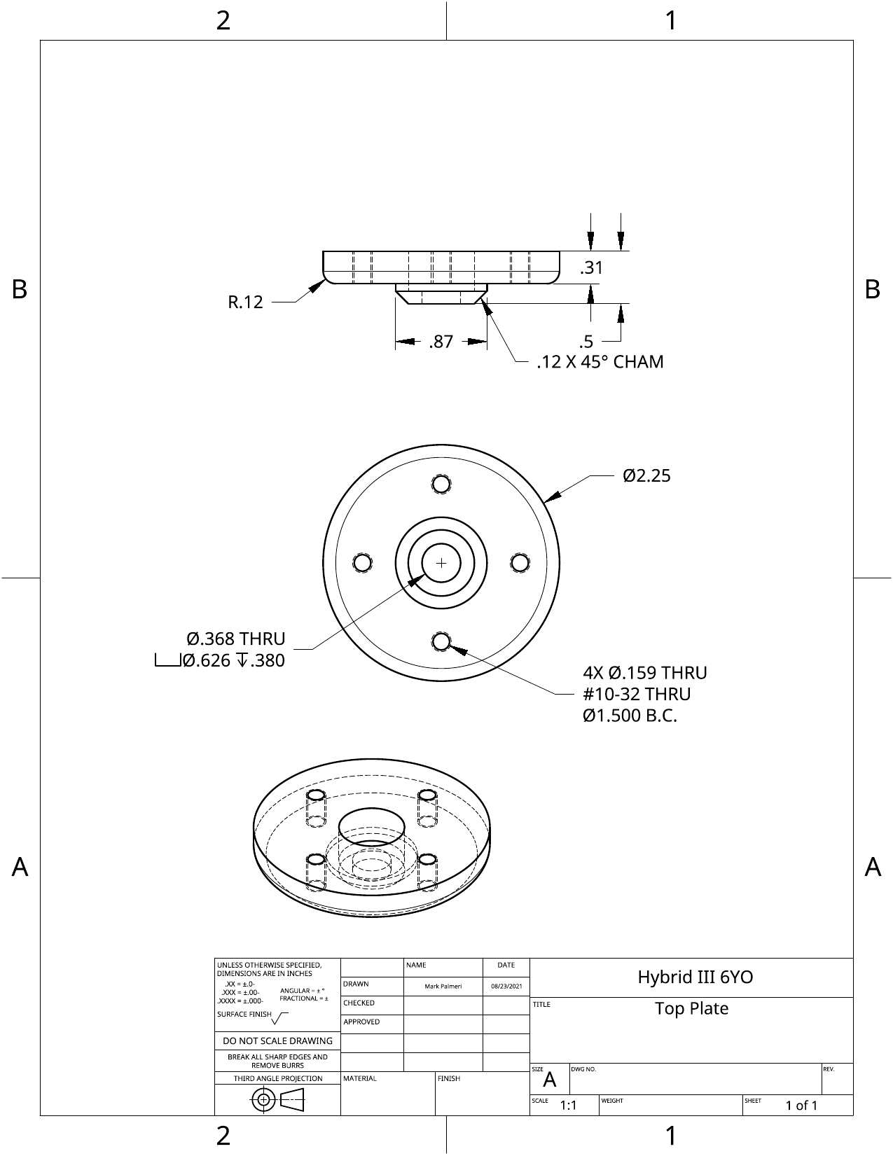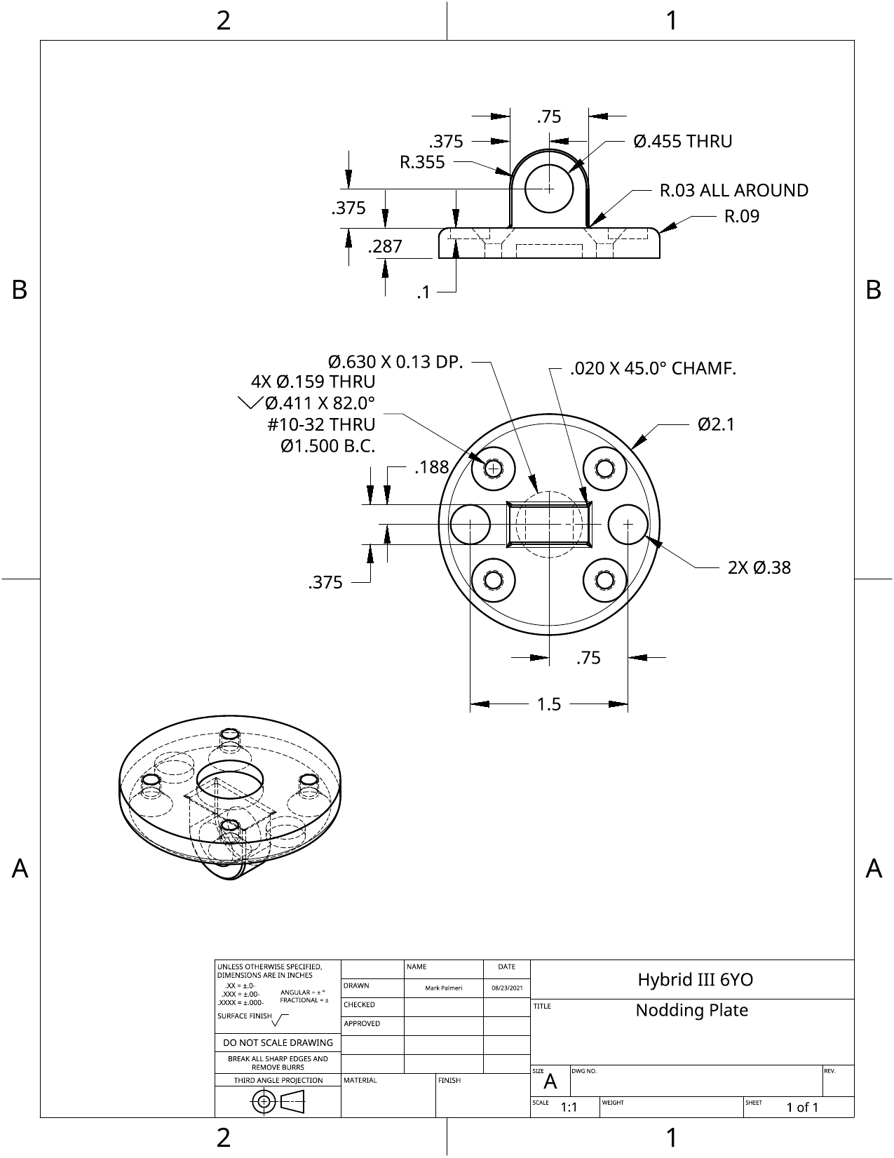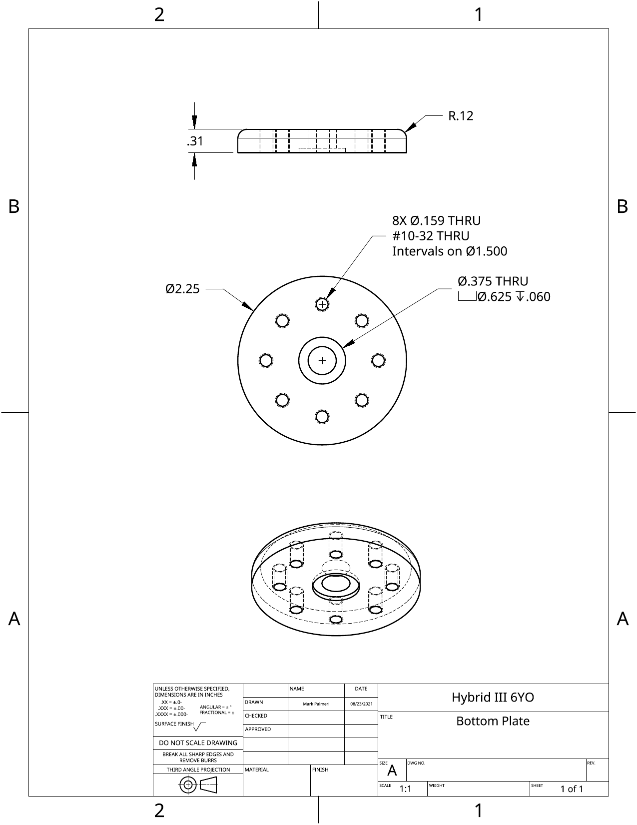 Upload mechanical drawings and a screenshot of the part for all of your parts to the Hybrid III 6 y/o Gradescope assignment.