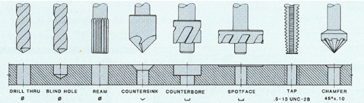 Hole diameter (and threading) can be specified by ANSI (e.g., #10-32, 32 tpi) or ISO (e.g., M5-0.8, mm pitch) standards